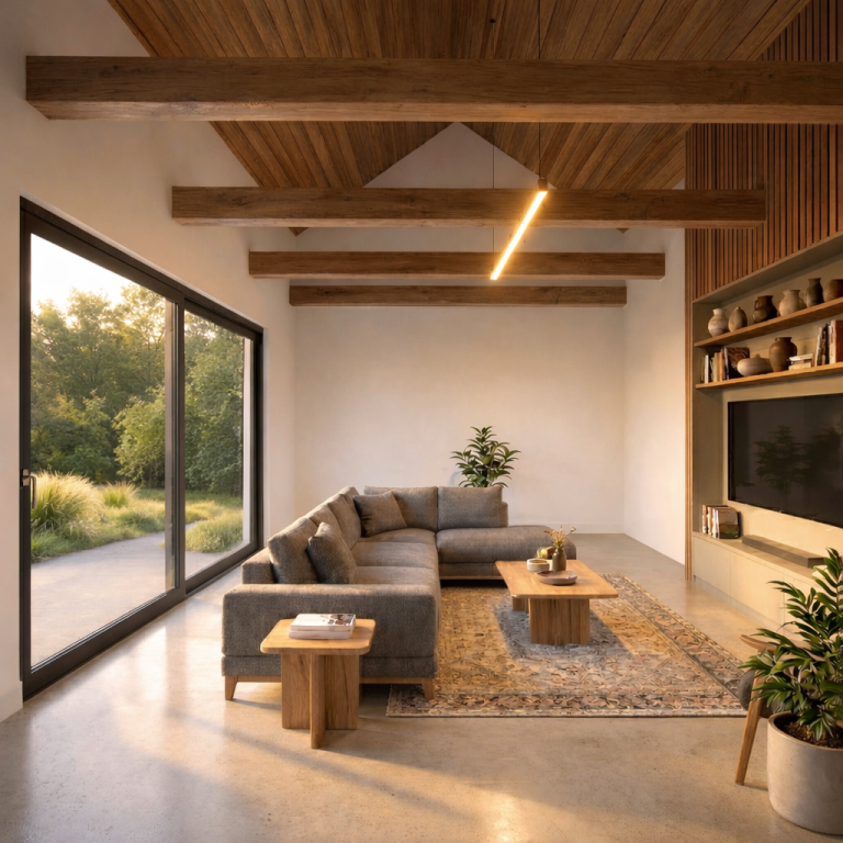 A szerkezeti lucfenyő méretpontossága és kedvező roststruktúrája stabil alapot biztosít az épületnek, míg a kültéri burkolatoknál alkalmazott vörösfenyő és WPC rendszerek hosszú távú időjárásállóságot nyújtanak.